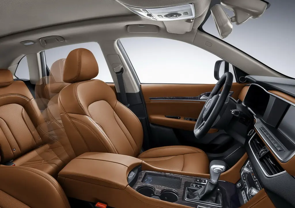 - салон со стильным лаконичным дизайном, кожаной отделкой и удобными сиденьями.